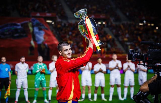 虽然无法出战,但罗德里、卡瓦哈尔和勒诺尔芒还是在本次集训期间造访了西班牙队的训练基地,受到全队的热烈欢迎,彰显了这支西班牙的团结。本场欧国联对阵丹麦是欧洲杯夺冠以来西班牙队第一次回到主场作战,因此比赛举办地穆尔西亚的球迷空前热情,早早守在球场外迎接西班牙队的大巴,队长莫拉塔在赛前向主场球迷展示来之不易的德劳内杯,引来全场欢呼声阵阵。上个月停赛结束后,莫拉塔也在本次国家队比赛日回到了西班牙阵中,本场他戴上队长袖标并重回首发。