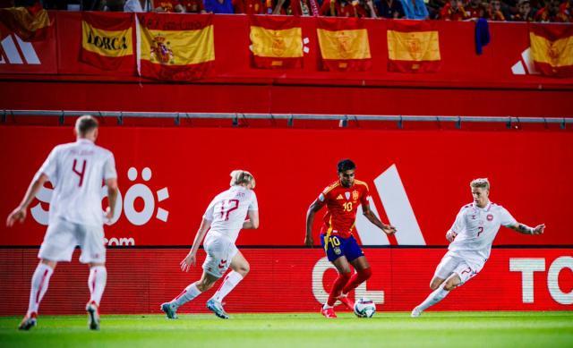 丹麦在前2轮欧国联收获连胜,暂时在积分榜压过西班牙一头,此役对西班牙既是关键的头名争夺战,又是欧洲杯后首个主场比赛,德拉富恩特在伤病满营的情况下仍派出了绝大部分欧洲杯的老班底,苏维门迪顶替罗德里,比维安代替勒诺尔芒,奥亚萨瓦尔则在左边锋位置上替代了尼科·威廉斯,首发阵容中唯一没参加欧洲杯的“新人”也是熟悉的面孔:热刺右后卫波罗。