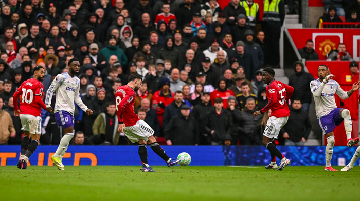第21分钟,B费开出角球,马奎尔头球摆渡,阿玛德的头球攻门颇具威胁,马丁内斯飞身将球挡出。